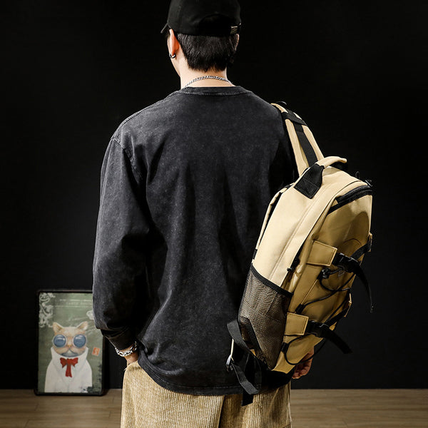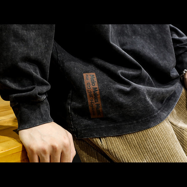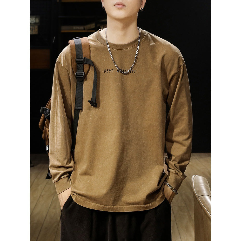 American-style Washed-out Vintage Long-sleeved T-shirt For Men