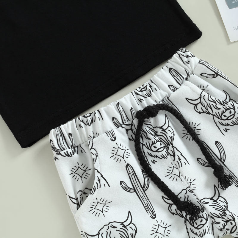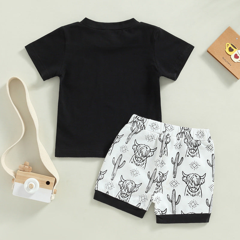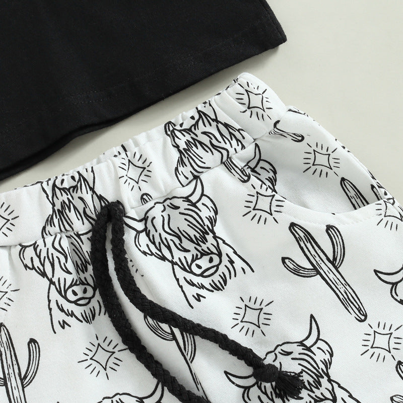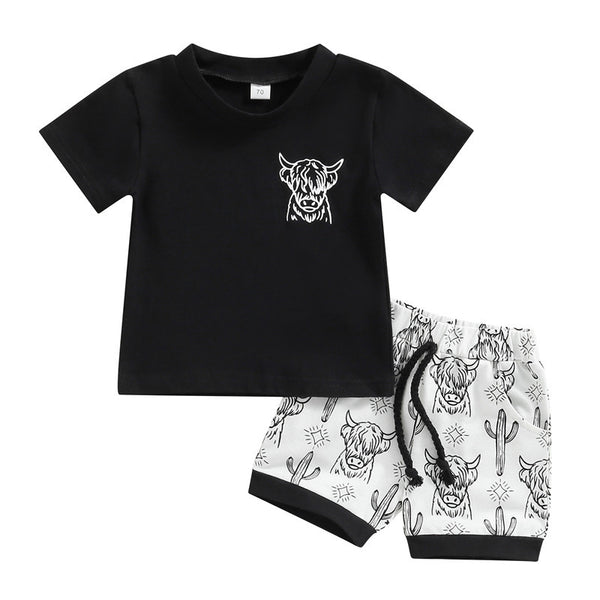 Cow Head Short-sleeved Printed T-shirt And Shorts Two-piece Set