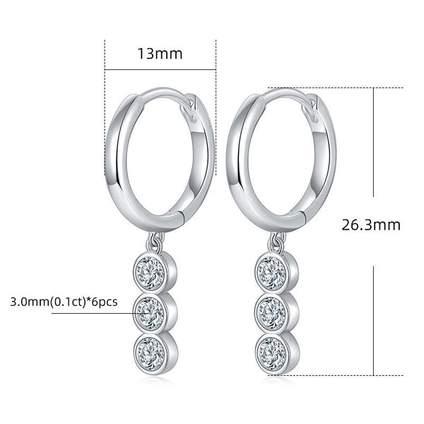 Fashion Moissanite 925 Sterling Silver 18K Gold Plating Elegant Three Stone Bubble Earrings