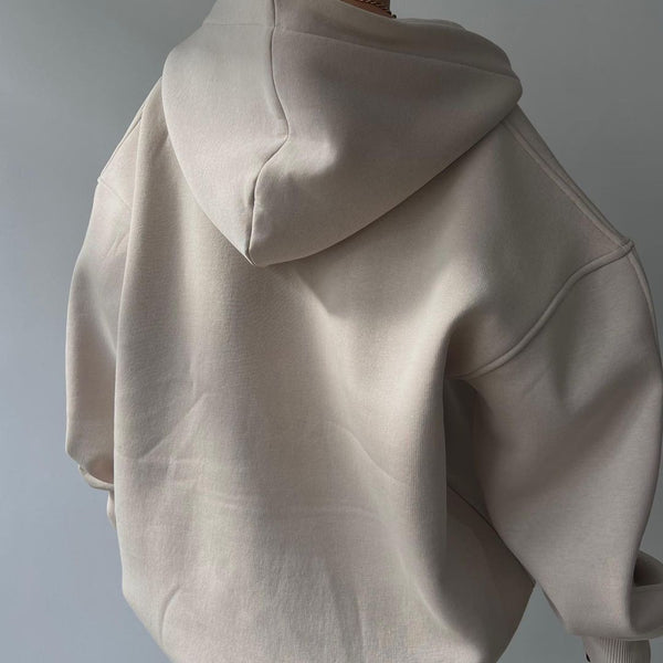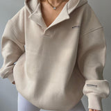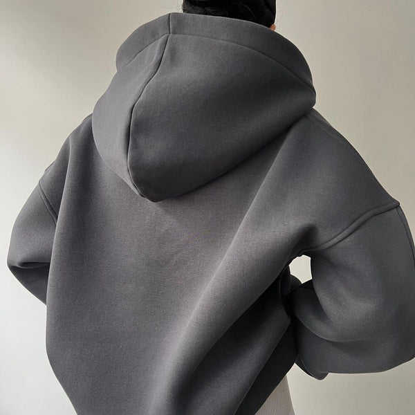 Fleece-lined Hooded Printed Long-sleeved Basic All-matching Sweater