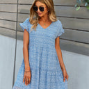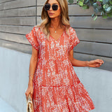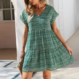 Flowers Print Short-sleeved Dress Summer Loose Chiffon A-line Dresses Fashion Casual Holiday Beach Dress For Womens Clothing