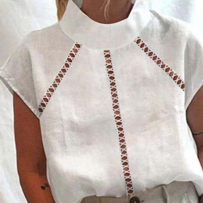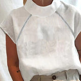 Hollow Cotton And Linen Ruffled Short Sleeves Women's Shirt