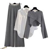 Knitted Sweater Shirt Wide Leg Pants Three-piece Set Autumn And Winter Suit Women