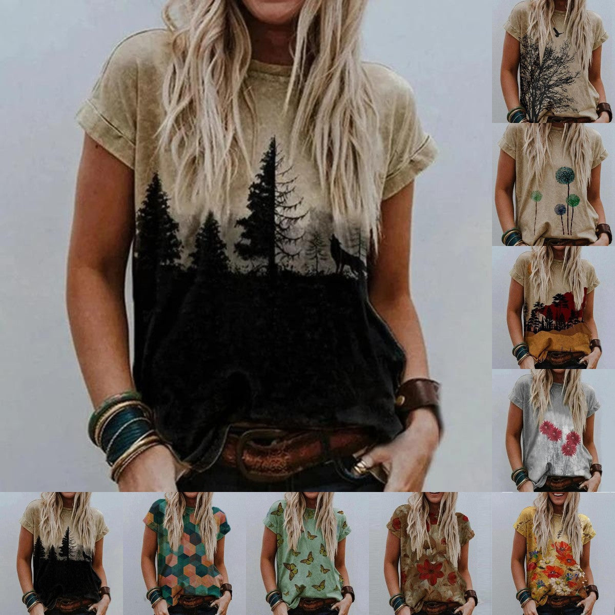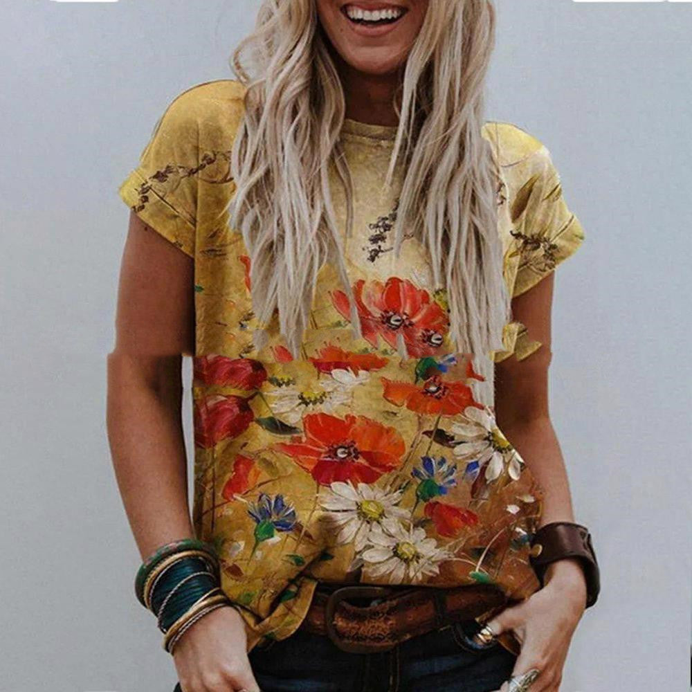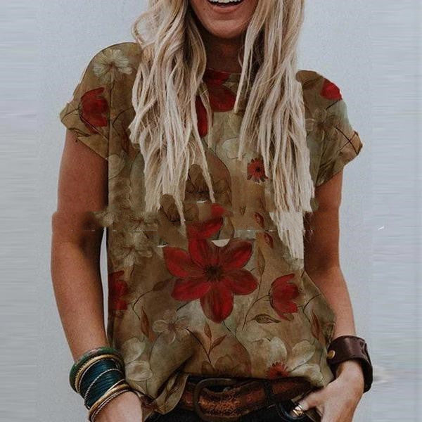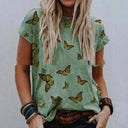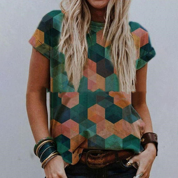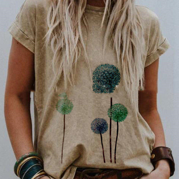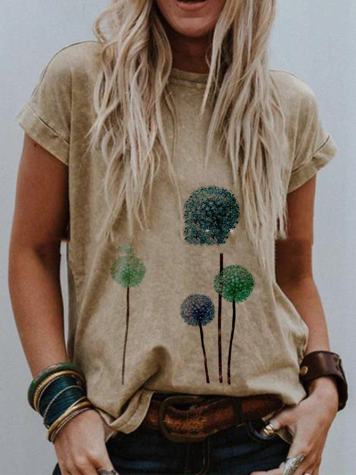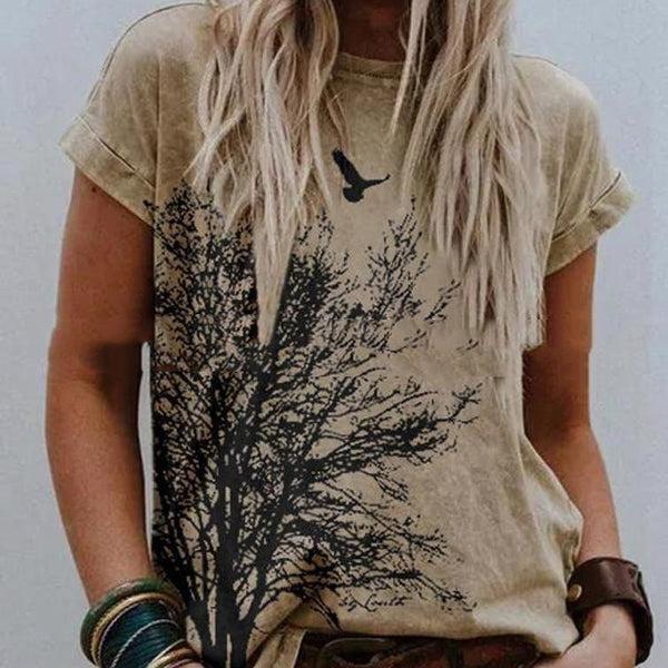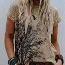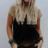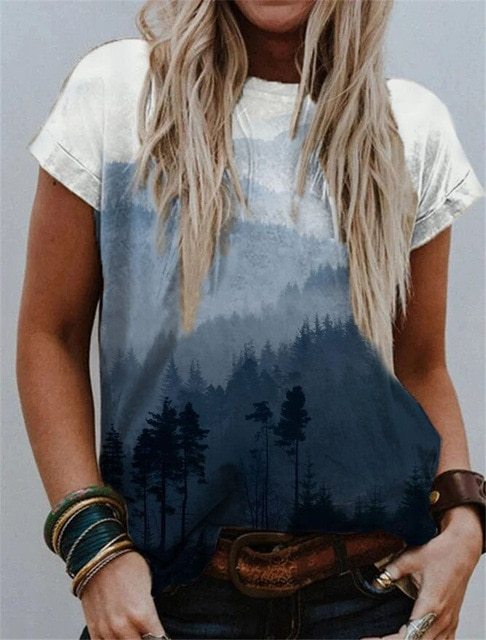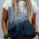 Landscape Print Round Neck Short Sleeve Ladies Casual T Shirt