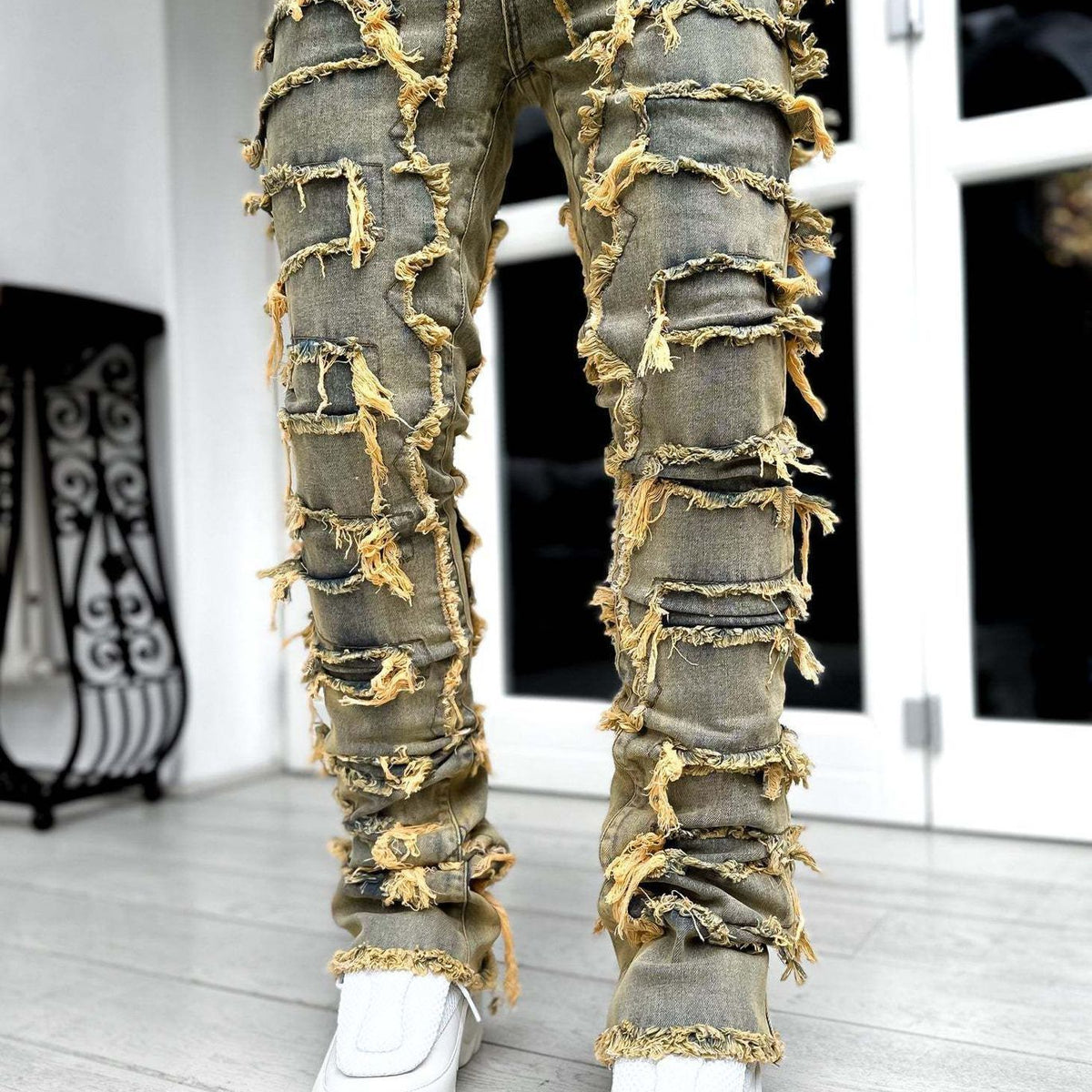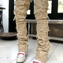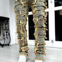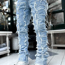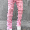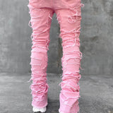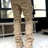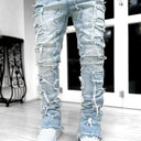 Men Trousers Individual Patched Pants Long Tight Fit Stacked Jeans For Mens Clothing