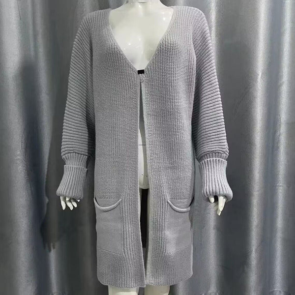 New Solid Color Loose Knitted Sweater Mid-length Coat