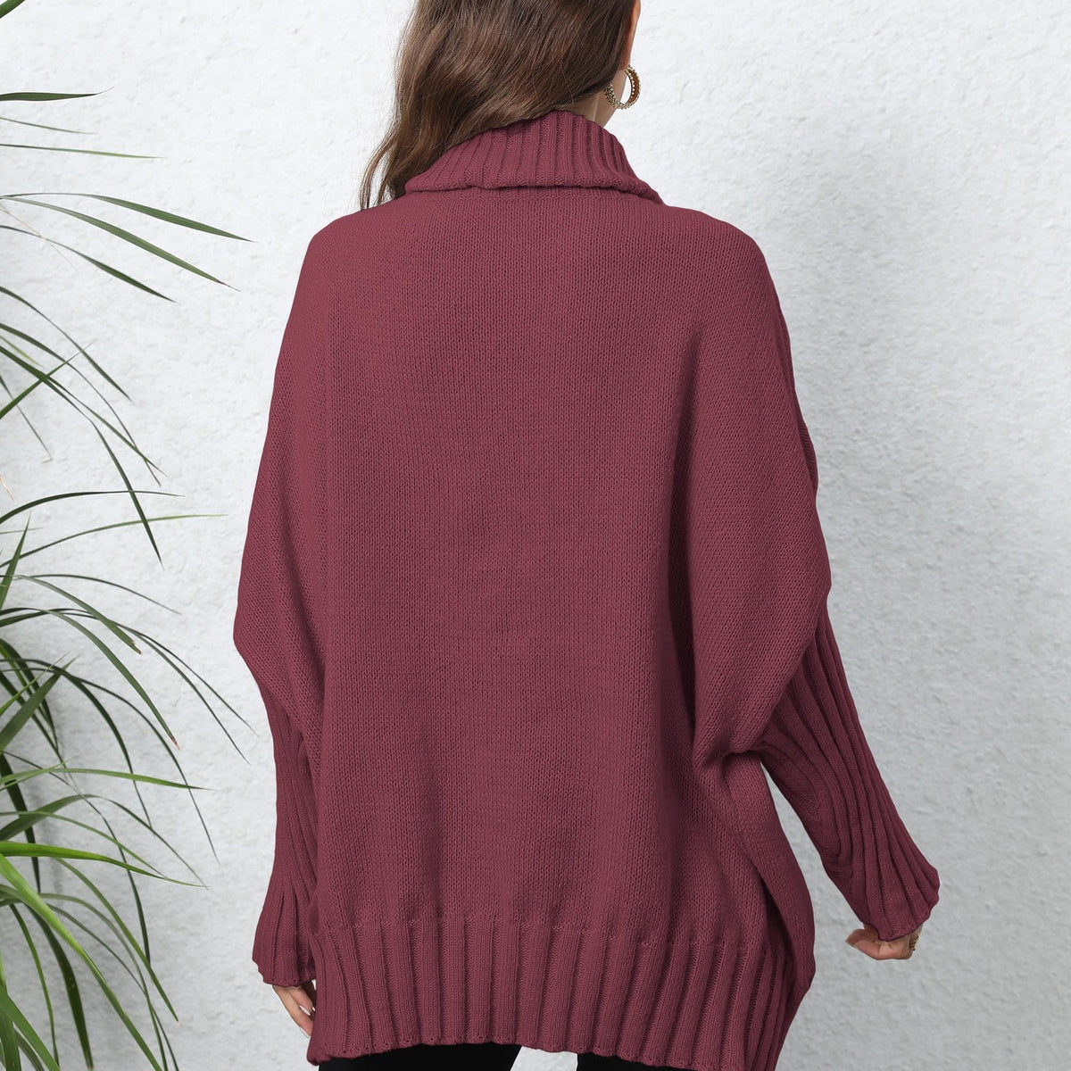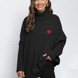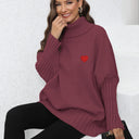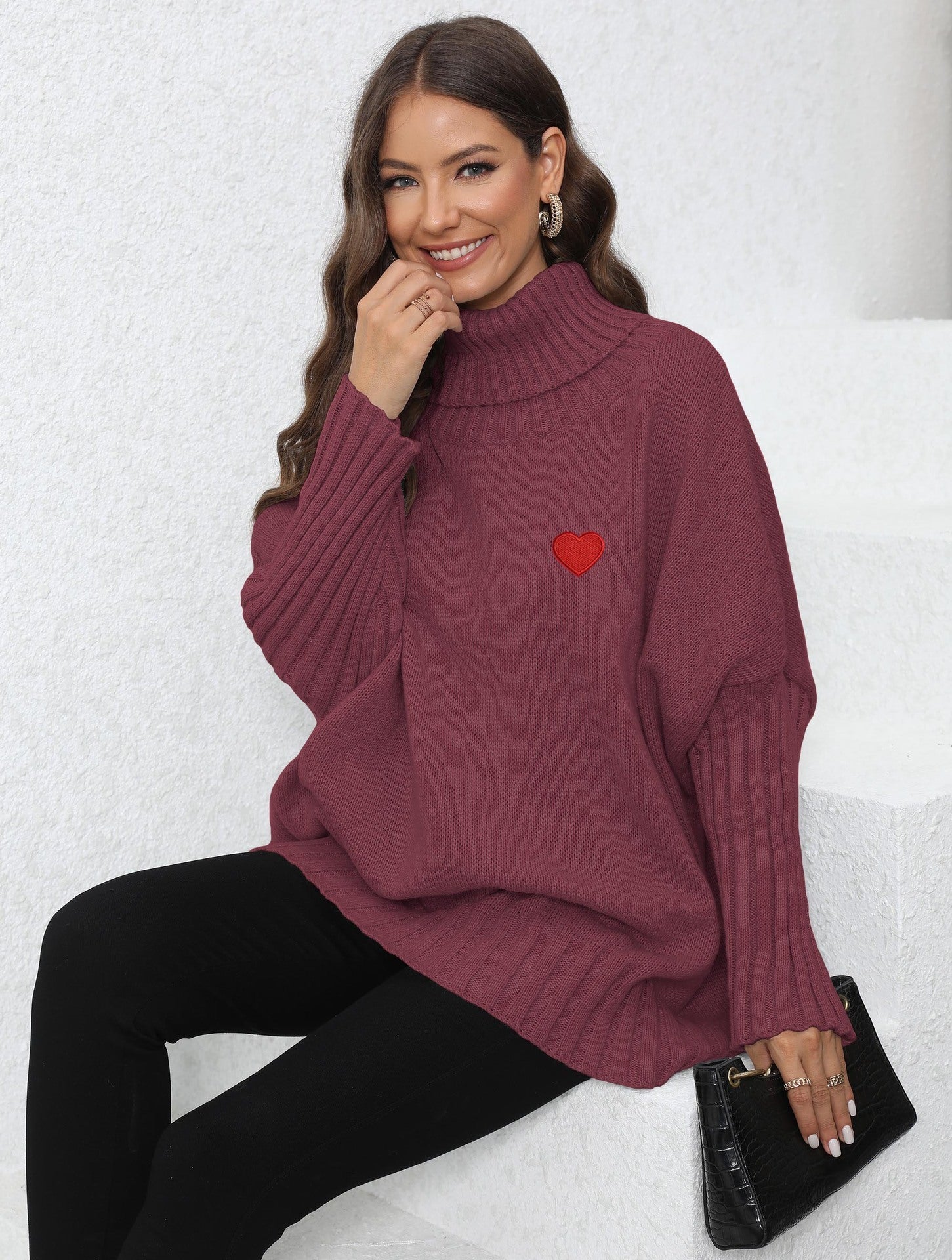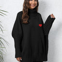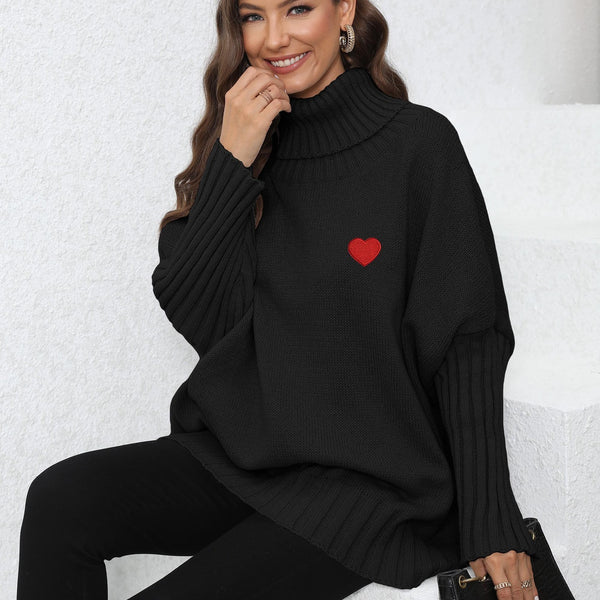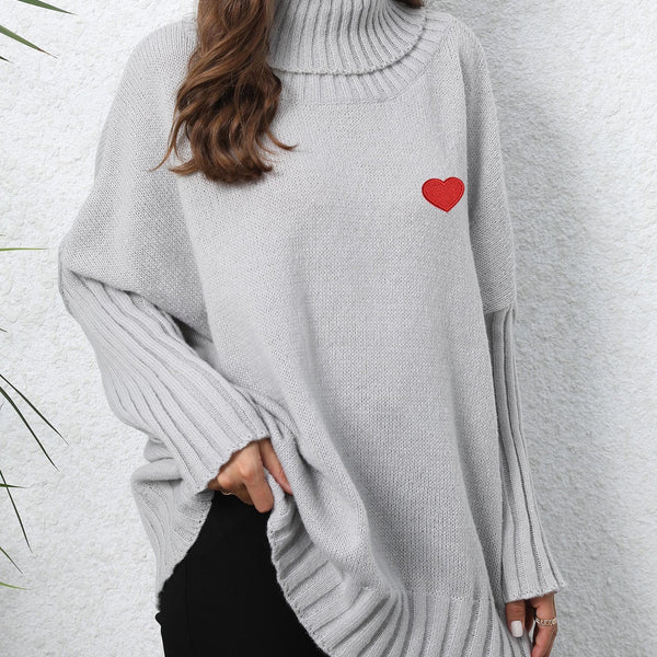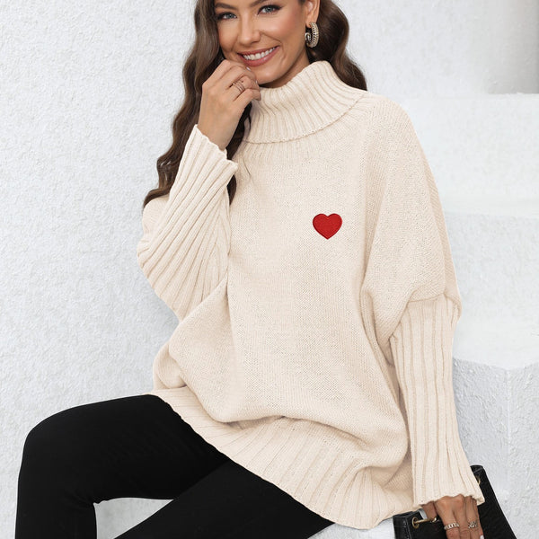 Women's Clothing Knitted Solid Color Turtleneck Lapel Loose Woven Love Stickers Sweater